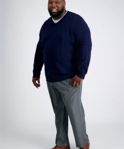Haggar Men’s Big & Tall Travel Performance Stria Tic Weave Suit Pantㅤ | Dark Heather Grey