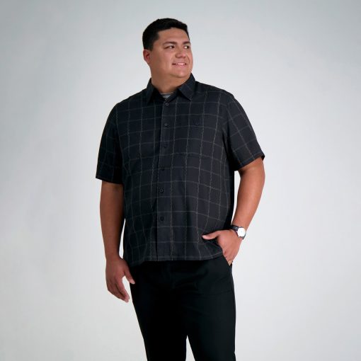 Haggar Men’s Big & Tall Microfiber Plaid Shirt | Black
