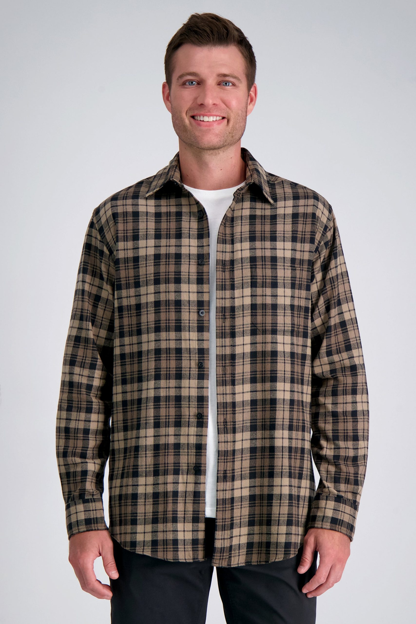 Elevate your casual wardrobe with our Long Sleeve Flannel Plaid Shirt. Crafted for both style and convenience, this shirt is machine washable for easy care and maintenance. With its regular fit and cuffed sleeves, it offers a comfortable and polished look suitable for any occasion. The curved hem and matched patch chest pocket add a modern touch to this classic flannel design, making it a versatile and stylish addition to your wardrobe.