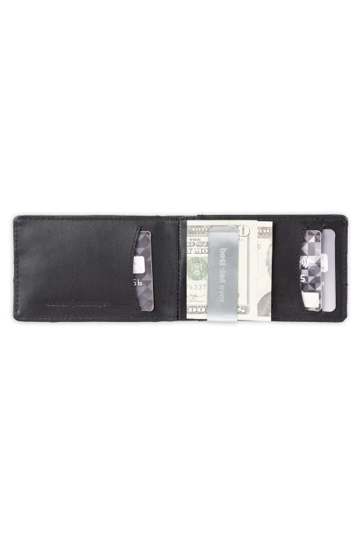 Streamlined for optimal capacity, the bifold wallet organizes your essentials into two sections. Plus a “Best Dad Ever” engraved removable money clip gives an additional carrying solution.